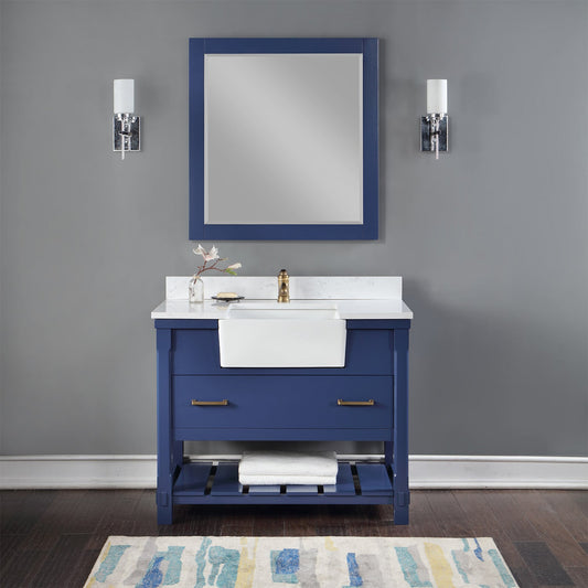 Georgia 42" Single Bathroom Vanity Set in Jewelry Blue and Aosta White Composite Stone Top with White Farmhouse Basin with Mirror