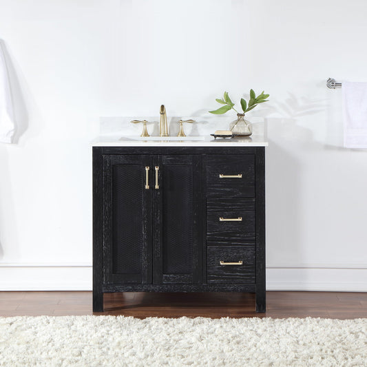 Hadiya 36" Single Bathroom Vanity Set in Black Oak with Aosta White Engineered Stone Countertop without Mirror