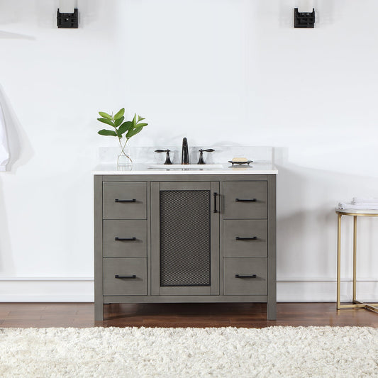 Isla 42" Single Bathroom Vanity Set in Gray and Aosta White Engineered Stone Countertop without Mirror