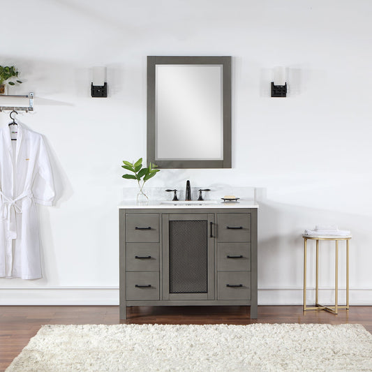 Isla 42" Single Bathroom Vanity Set in Gray and Aosta White Engineered Stone Countertop with Mirror