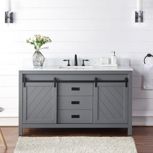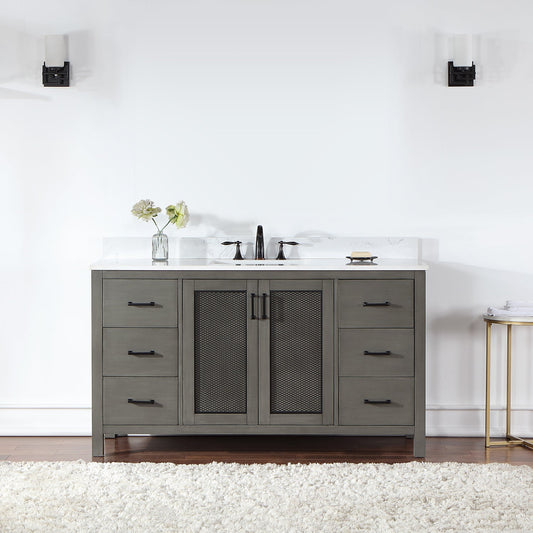 Hadiya 60" Single Bathroom Vanity Set in Gray Pine with Aosta White Engineered Stone Countertop without Mirror