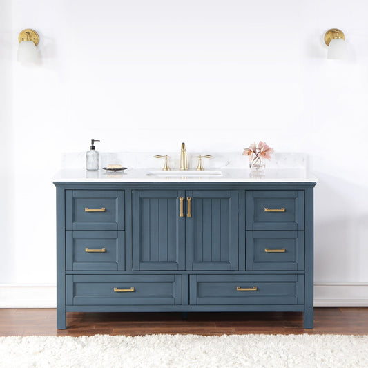 Isla 60" Single Bathroom Vanity Set in Classic Blue and Aosta White Engineered Stone Countertop without Mirror
