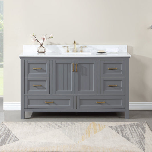 Isla 60" Single Bathroom Vanity Set in Gray and Aosta White Engineered Stone Countertop without Mirror