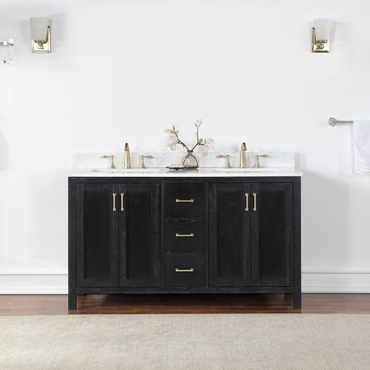 Hadiya 60" Double Bathroom Vanity Set in Black Oak with Aosta White Engineered Stone Countertop without Mirror