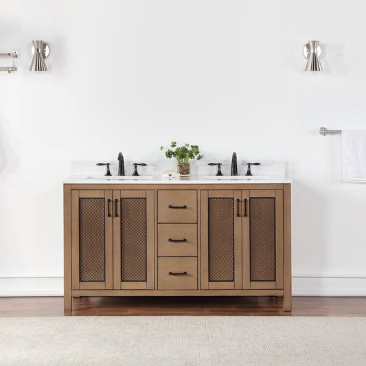 Monna 60" Double Bathroom Vanity Set in Gray Pine with Aosta White Engineered Stone Countertop without Mirror