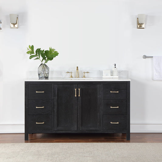 Hadiya 60" Single Bathroom Vanity Set in Black Oak with Aosta White Engineered Stone Countertop without Mirror