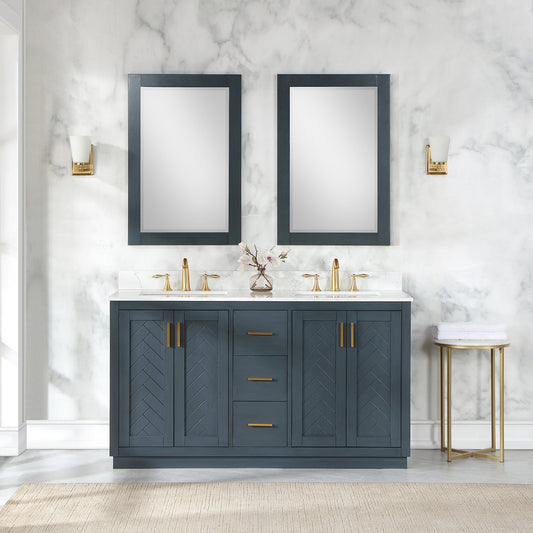 Gazsi 60" Double Bathroom Vanity Set in Classic Blue with Grain White Engineered Stone Countertop with Mirror