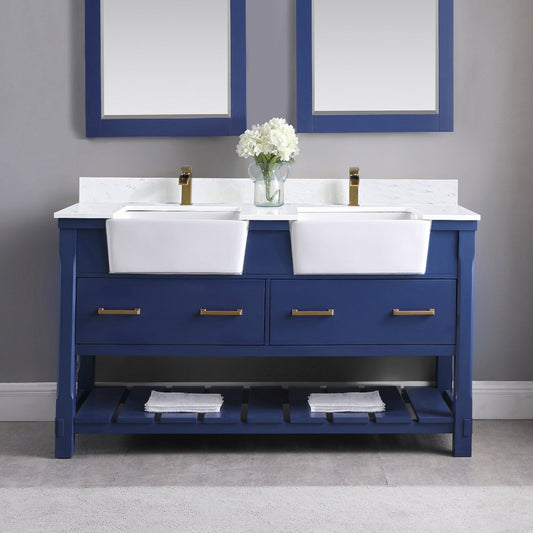 Georgia 60" Double Bathroom Vanity Set in Jewelry Blue and Aosta White Composite Stone Top with White Farmhouse Basin without Mirror