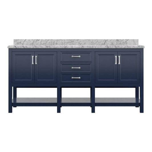Affinity 72" Modern Bathroom Vanity in Blue Cabinet Carrara White Marble Countertop