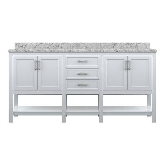 Affinity 72" Modern Bathroom Vanity in White Cabinet Carrara White Marble Countertop