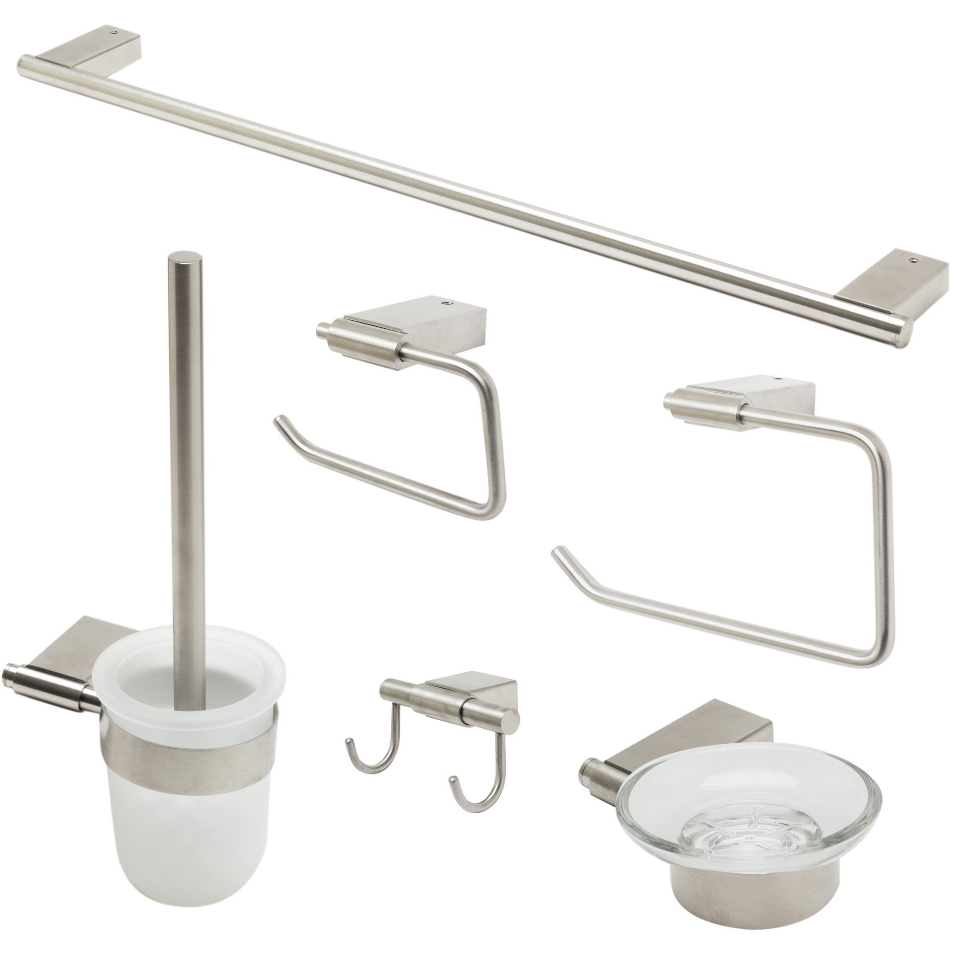 Brushed Nickel 6 Piece Matching Bathroom Accessory Set