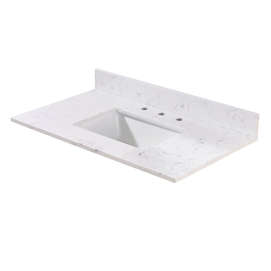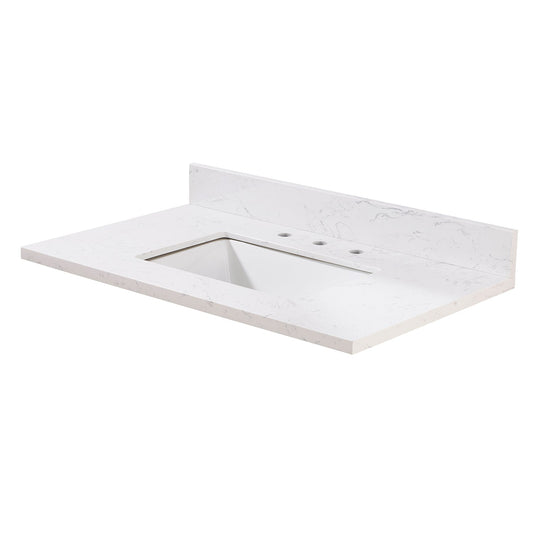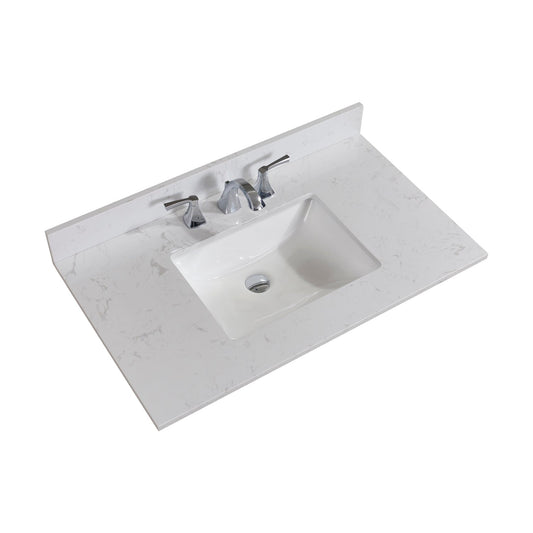 37" Composite Stone Vanity Top in Jazz White with White Sink