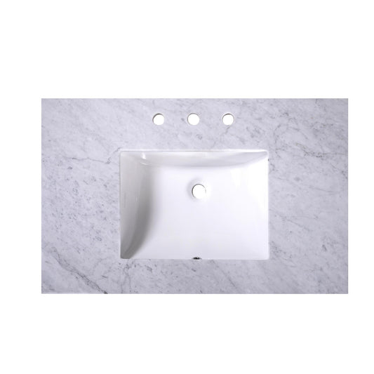 36" x 23" x 3.5" Carrara White Marble Top with Single Sink, Undermount White Rectangular Ceramic (1-hole)