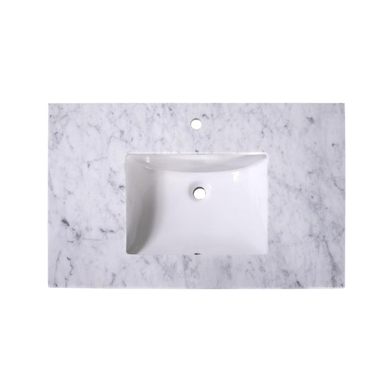 36" x 22" x 0.75" Carrara White Marble Top - 4" Backsplash, Single Rectangle Ceramic Sink (1-hole)