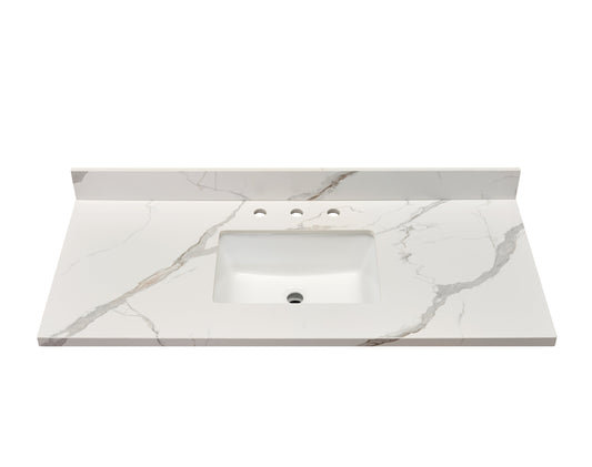 49" Sintered Stone Vanity Top in Calacatta White with White Sink
