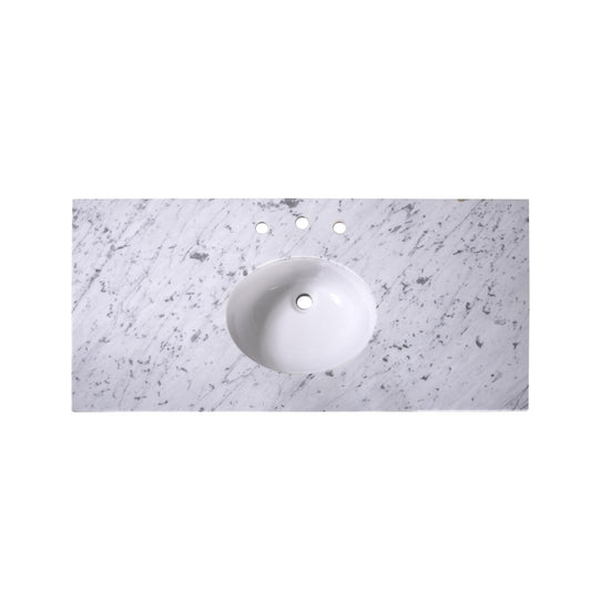 48" x 22" x 0.75" Carrara White Marble Top - 4" Backsplash, Single Oval Ceramic Sink (8" spread)