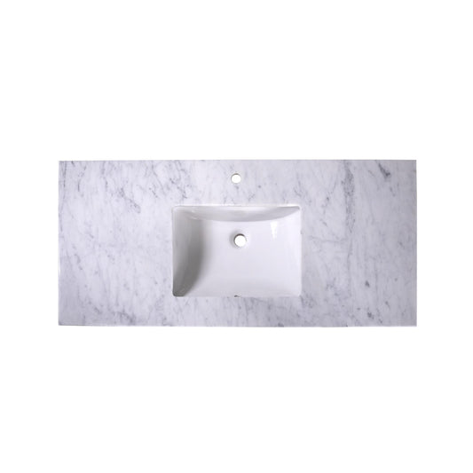 48" x 22" x 0.75" Carrara White Marble Top - 4" Backsplash, Single Rectangle Ceramic Sink (1-hole)