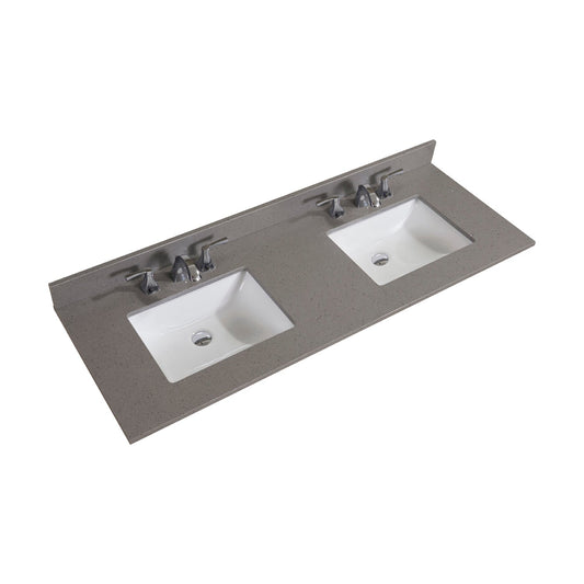 61" Mountain Gray/Polished Engineered Marble Bathroom Vanity Top with White Sink