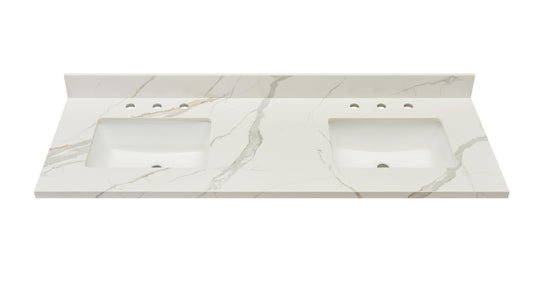 61" Sintered Stone Vanity Top in Calacatta White with White Sink