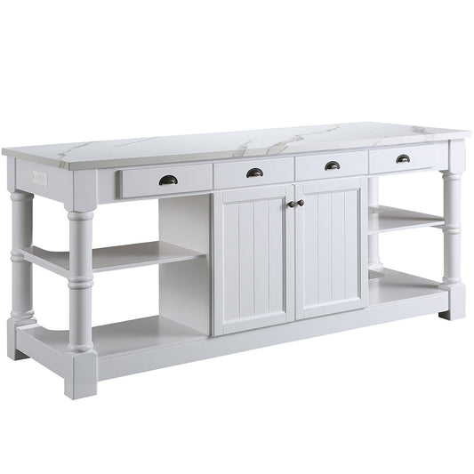 Monterey 80 In. Kitchen Island With White Quartz Sintered Stone Countertop in White