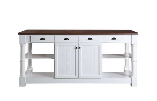 Monterey 80 In. Kitchen Island With Dark Walnut Veneered Wood Countertop in White