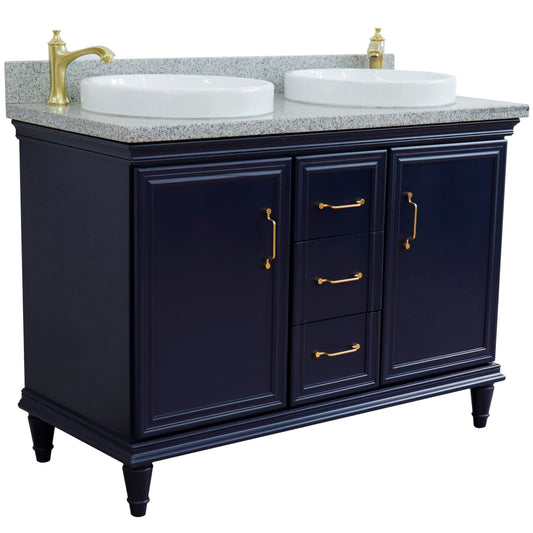 49" Double vanity in Blue finish with Gray granite and oval sink