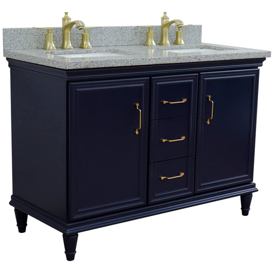 49" Double vanity in Blue finish with Gray granite and rectangle sink