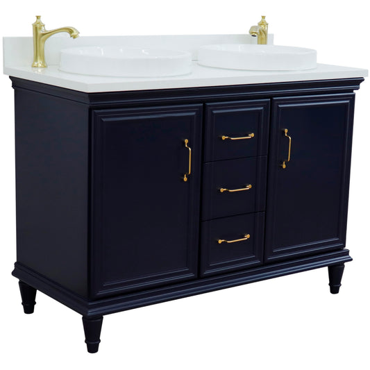 49" Double vanity in Blue finish with White engineered stone and round sink
