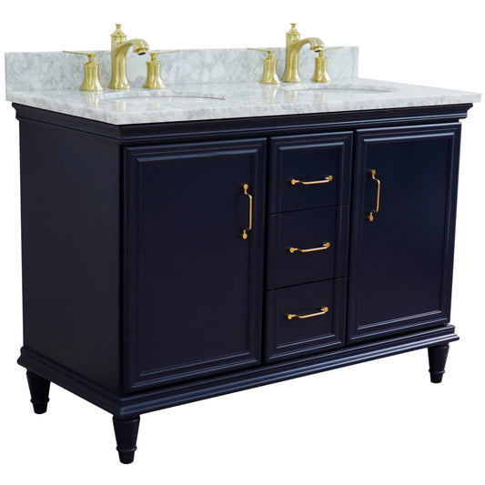 49" Double vanity in Blue finish with White Carrara and oval sink