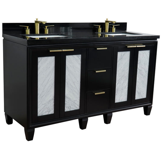 61" Double sink vanity in Black finish with Black galaxy granite and rectangle sink