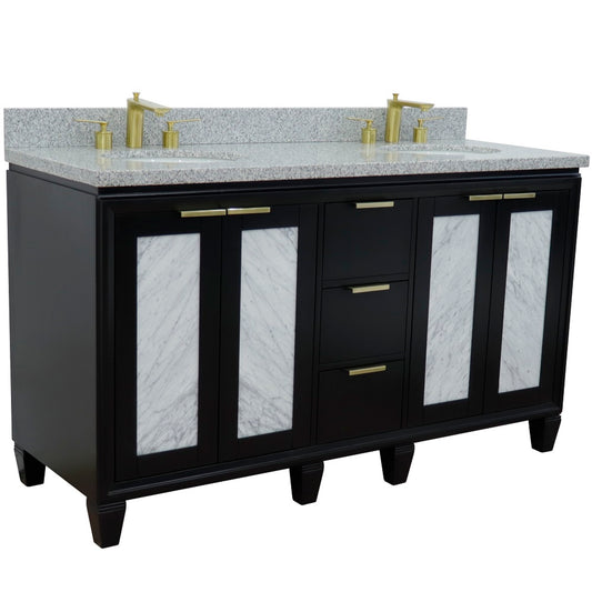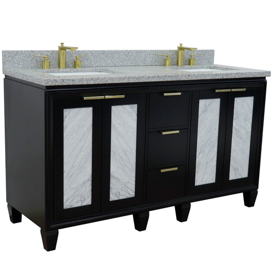 61" Double sink vanity in Black finish with Gray granite and rectangle sink