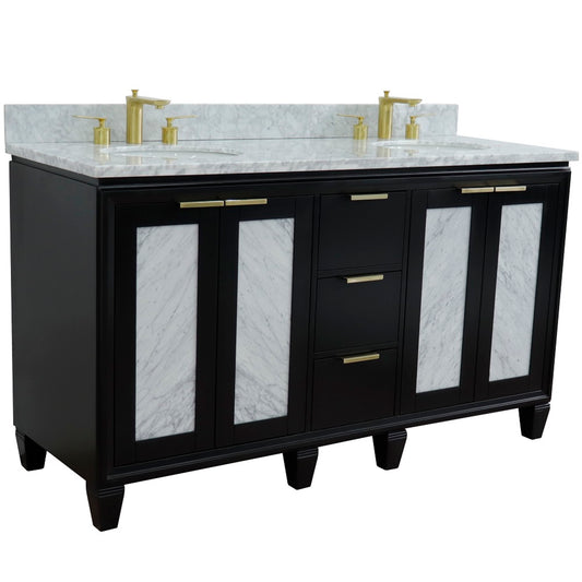 61" Double sink vanity in Black finish with White Carrara marble and oval sink