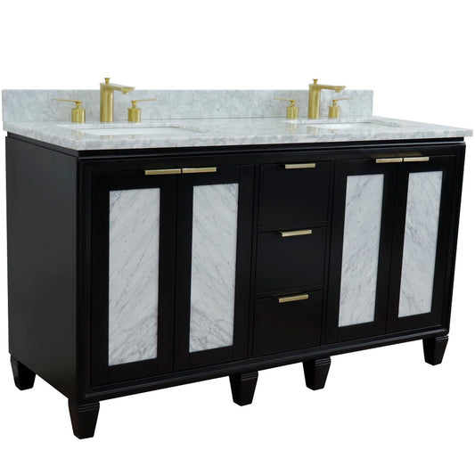 61" Double sink vanity in Black finish with White Carrara marble and rectangle sink