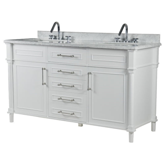 60" DOUBLE VANITY IN WHITE WITH WHITE CARRRA MARBLE TOP