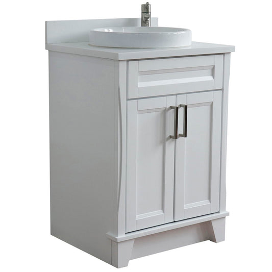 25" Single sink vanity in White finish with White engineered stone and round sink