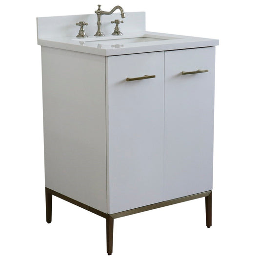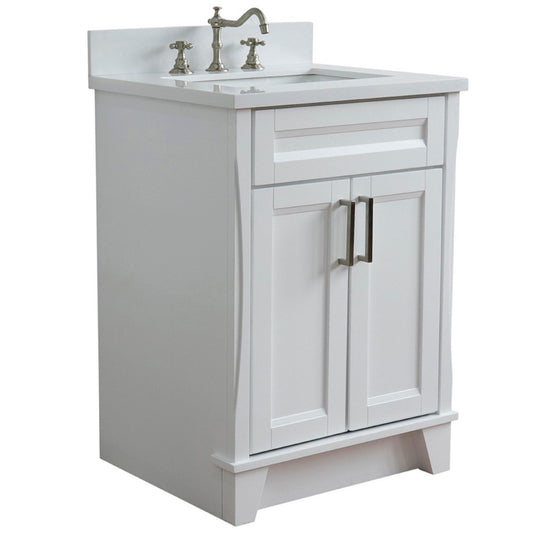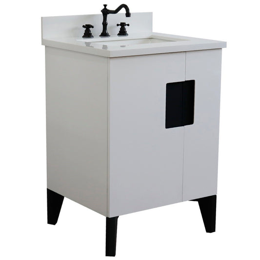 25" Single sink vanity in White finish with White engineered stone and rectangle sink