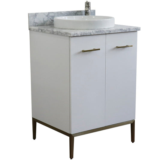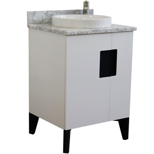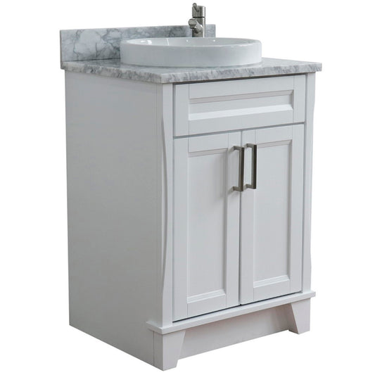 25" Single sink vanity in White finish with White Carrara marble and round sink