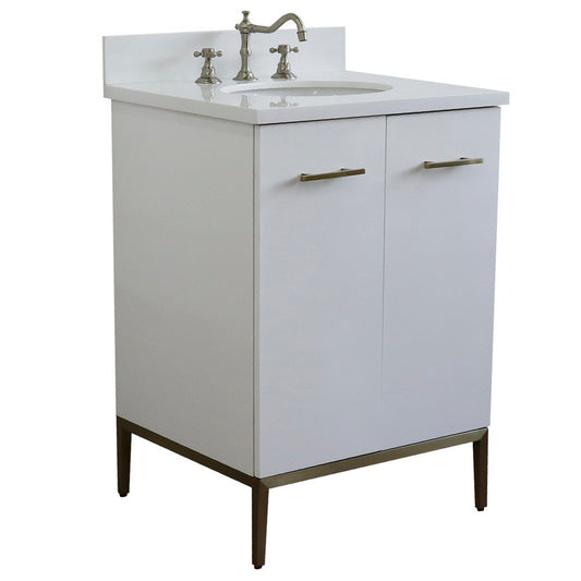 25" Single sink vanity in White finish with White engineered stone and oval sink
