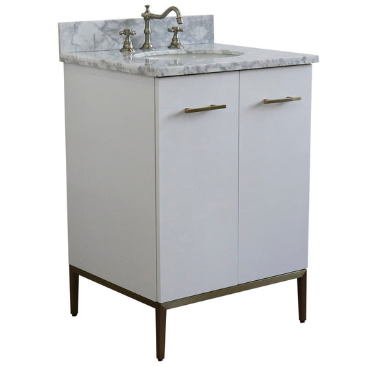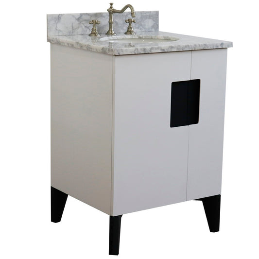 25" Single sink vanity in White finish with White Carrara marble and oval sink