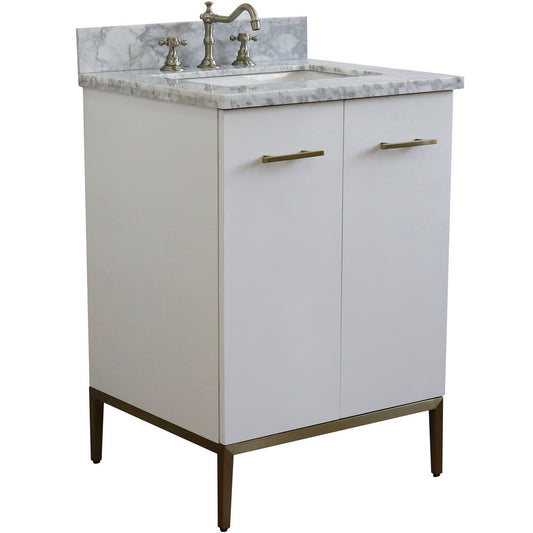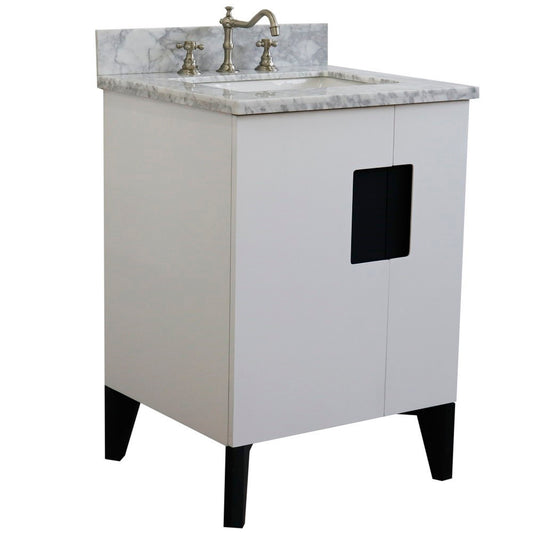 25" Single sink vanity in White finish with White Carrara marble and rectangle sink