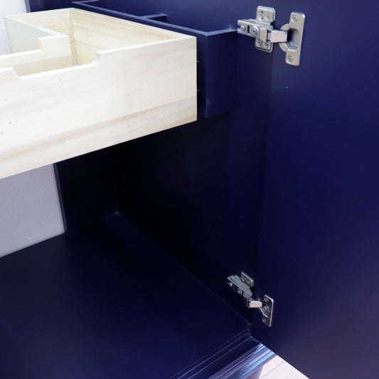 25" Single vanity in Blue finish with Black galaxy and rectangle sink