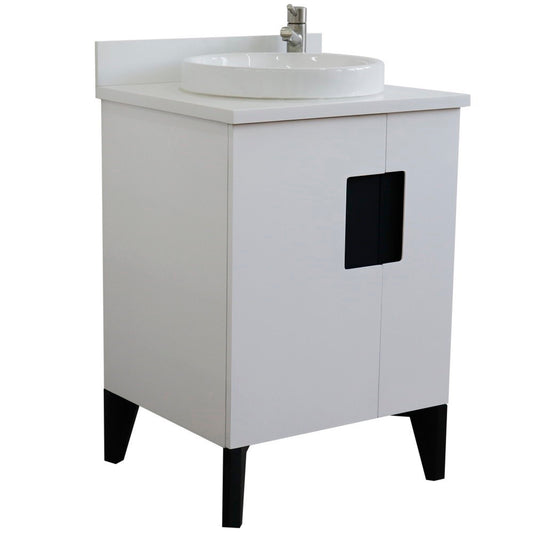 25" Single sink vanity in White finish with White engineered stone and round sink