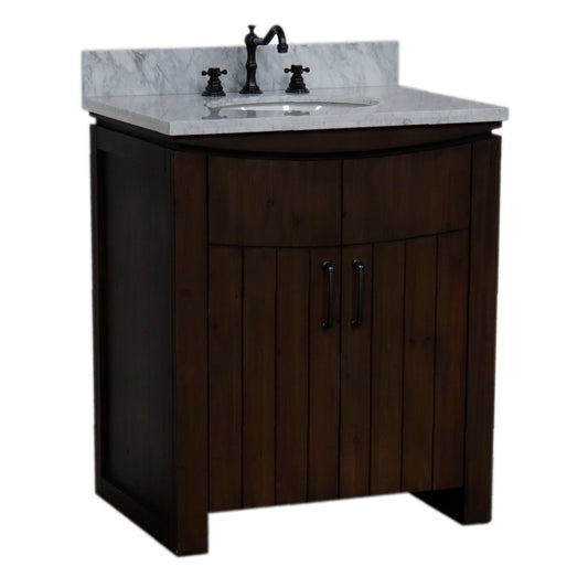 30" Single Sink Vanity Rustic Wood Finish in White marble Top