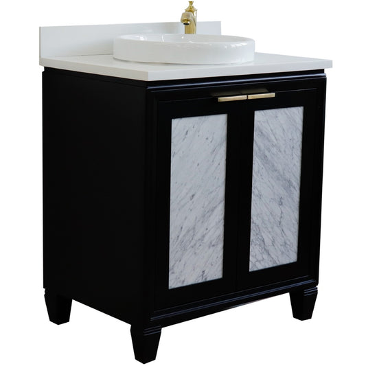 31" Single sink vanity in Black finish with White engineered stone with round sink