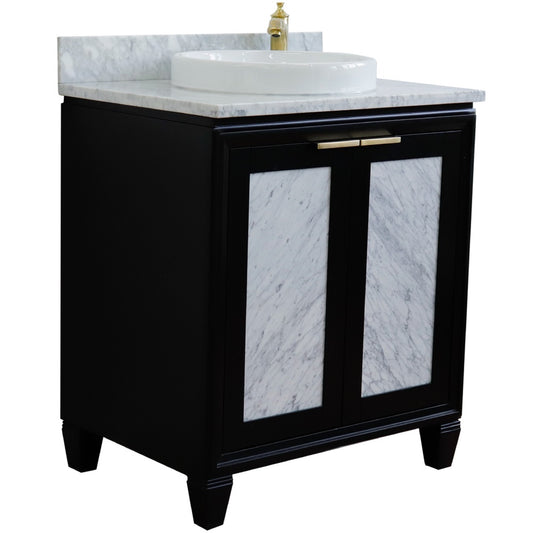 31" Single sink vanity in Black finish with White Carrara marble with round sink