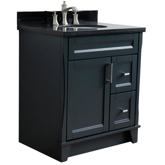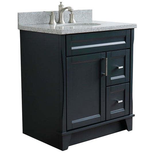31" Single sink vanity in Dark Gray finish with Gray granite with oval sink