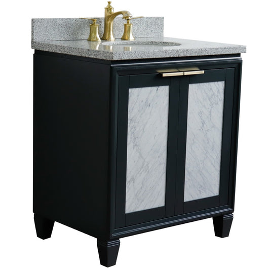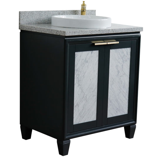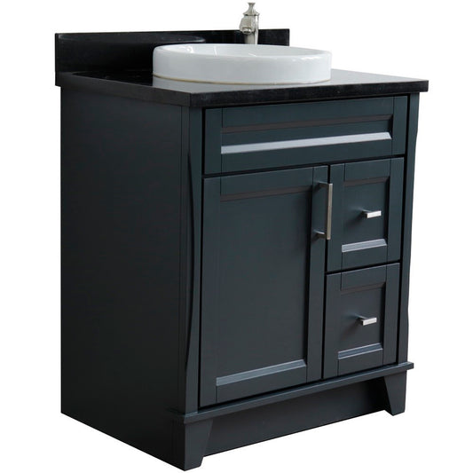 31" Single sink vanity in Dark Gray finish with Black galaxy granite with round sink