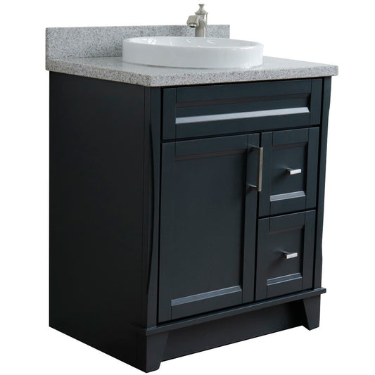31" Single sink vanity in Dark Gray finish with Gray granite with round sink