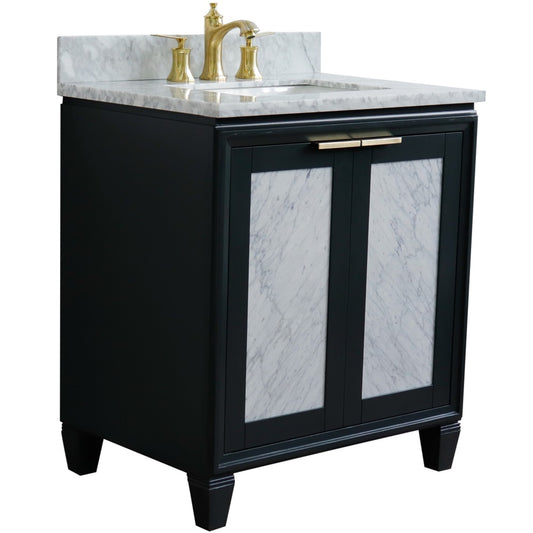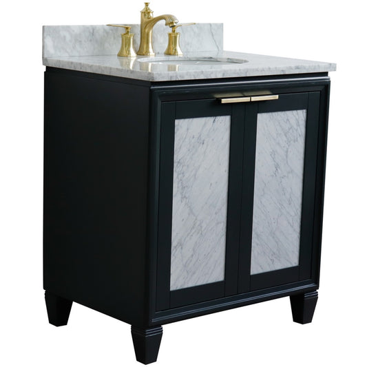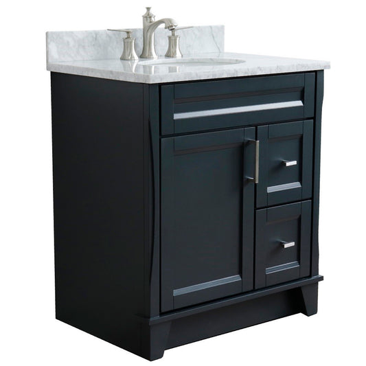 31" Single sink vanity in Dark Gray finish with White Carrara marble with oval sink