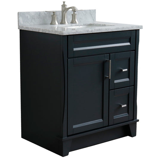 31" Single sink vanity in Dark Gray finish with White Carrara marble with rectangle sink